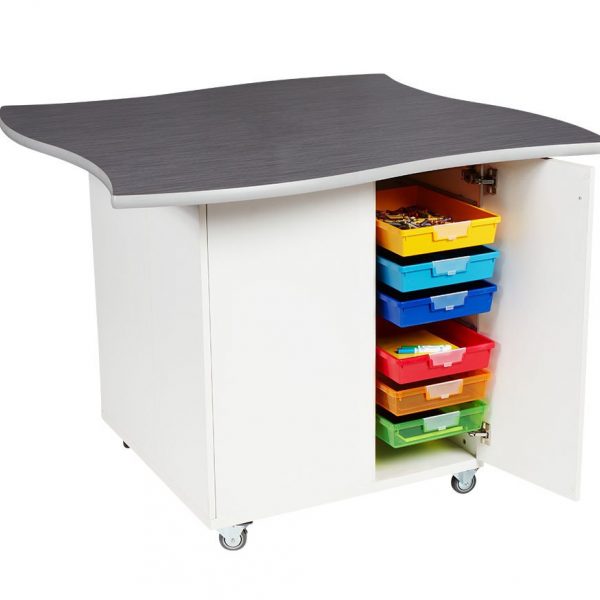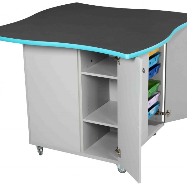 The “Stem Workstation” is a convenient, interactive workspace that fits easily into any classroom, learning center, or library. The unit is mobile and made of solid construction. The workstation is available in your choice of laminate colors. The standard worksurface is our unique Melody top design for an aesthetically pleasing and more easily accesses the cabinet.