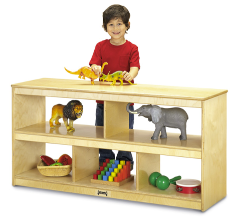 Open shelving so toddlers can access toys from either side.