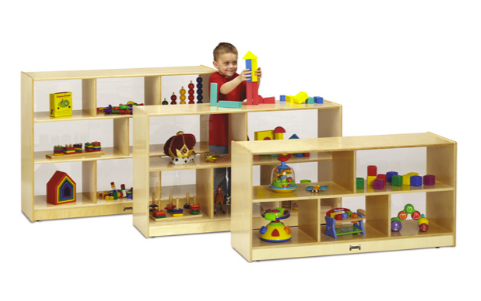 At a size made just for children, this storage unit is perfect for blocks, games, and more. It features a see-thru, acrylic back panel, making it easy for youngsters to find the items they need.