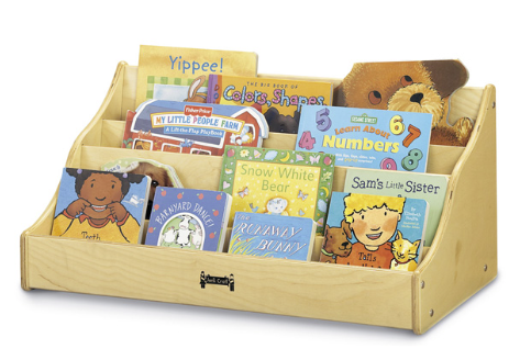 Foster little tots’ book exploration by placing books at their level. Four extra-wide dividers hold thick cardboard books.