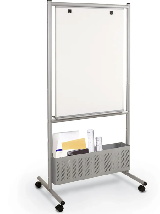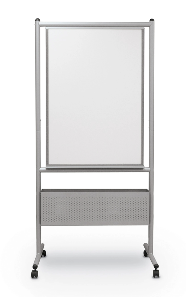 Available with silver powder-coated steel frame, and a double-sided magnetic dry erase whiteboard.