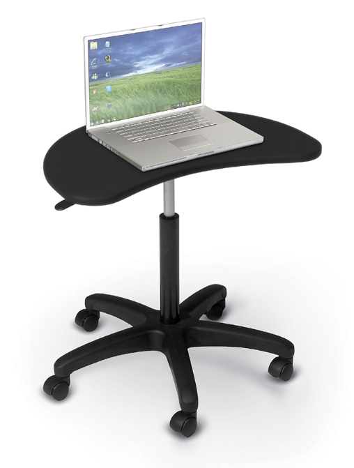 The Pop Laptop Cart offers a versatile and ergonomic solution for positioning your laptop, keyboard, or tablet at the perfect height. Its curved design supports comfortable use, adjustable from 21-1/4″ to 31-1/4″ to suit various working postures. Equipped with a durable black top and a stable five-star base with smooth 2″ casters, this compact mobile stand ensures both stability and easy mobility in any workspace. Ideal for professionals seeking an efficient and adaptable workstation accessory.